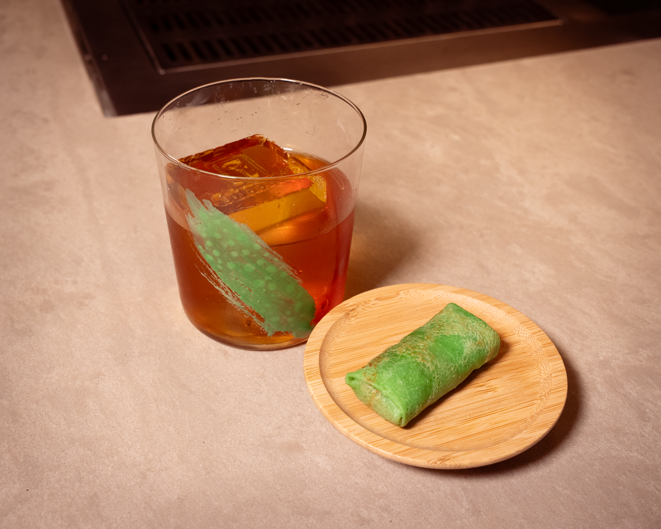 An Old-Fashioned style clarified Hong Kong Milk Tea Cocktail… if you know, you know.